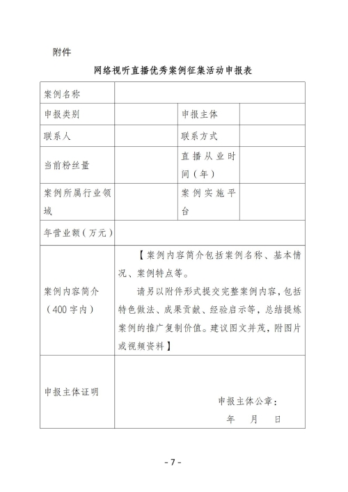 關(guān)于征集網(wǎng)絡(luò)視聽直播優(yōu)秀案例的通知